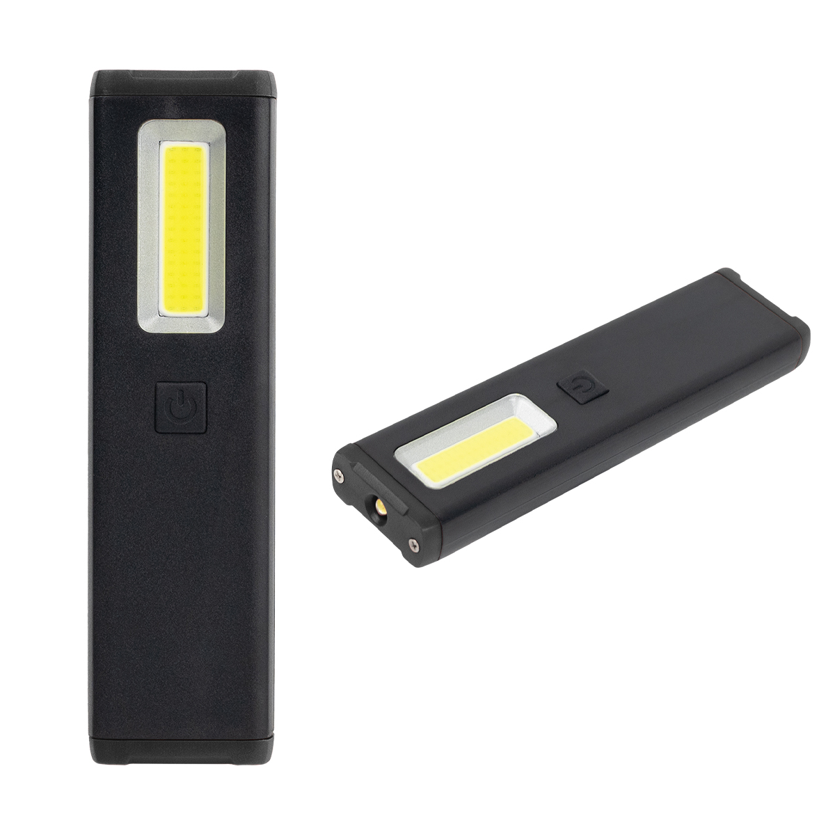 Features a bright white COB worklight and LED flashlight with four light settings: LED, high and low COB, and red COB light