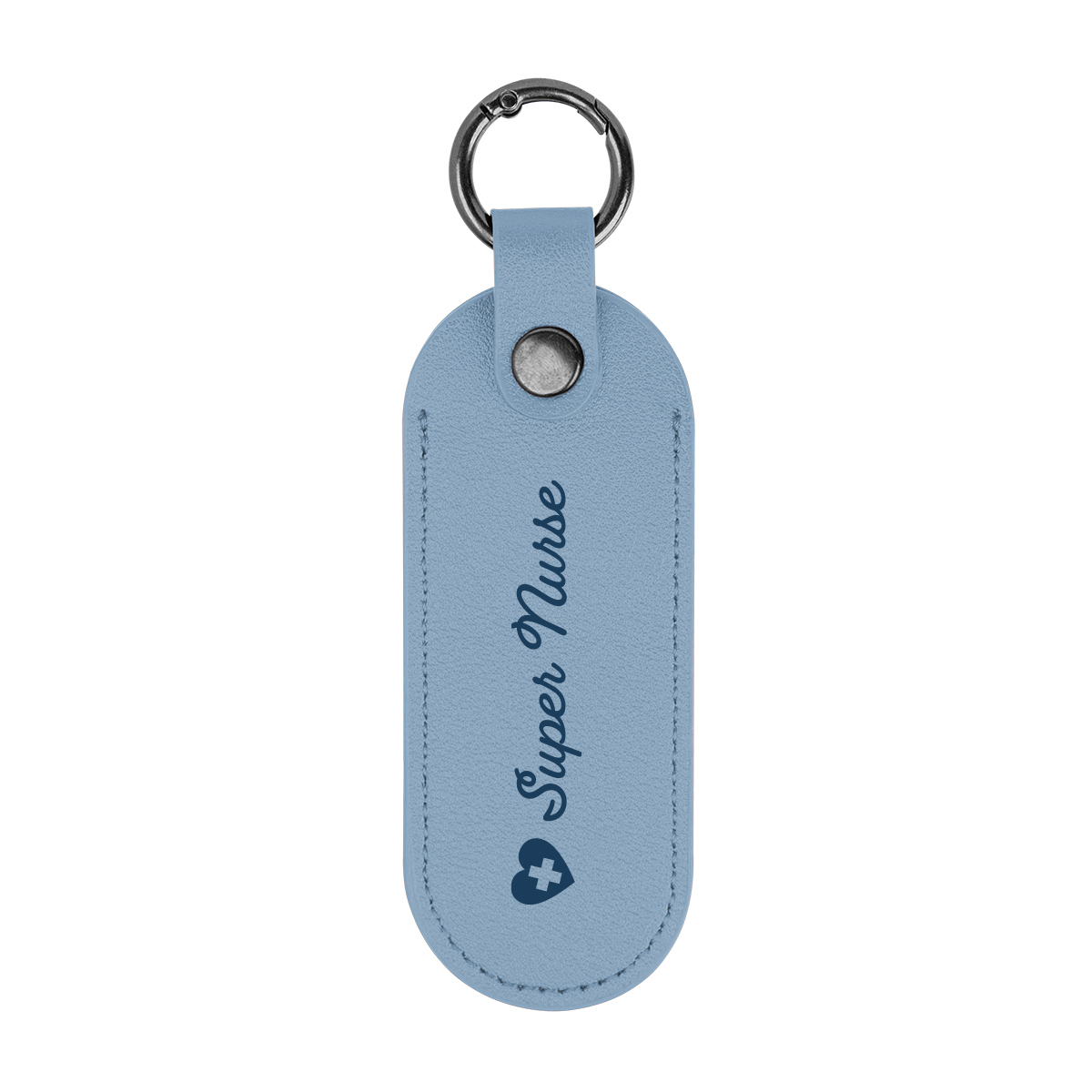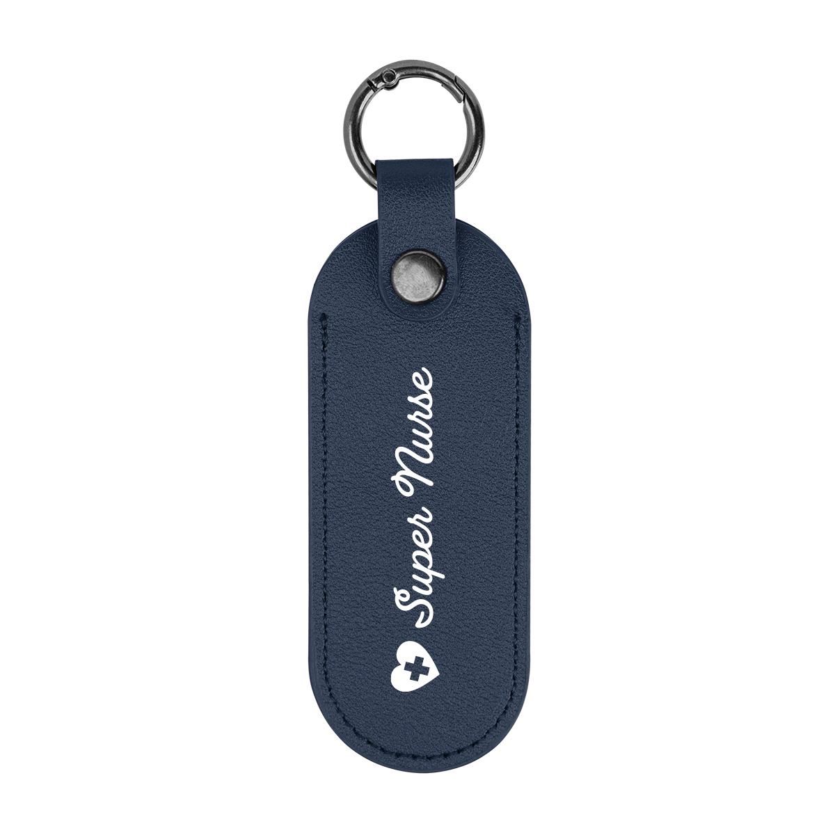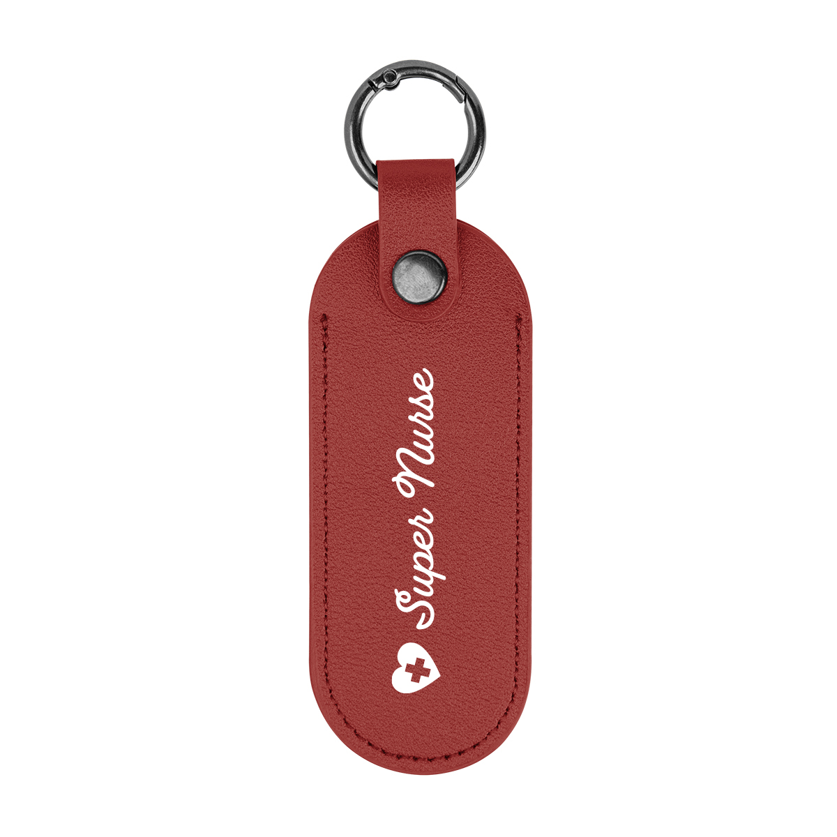 Durable leatherette keychain paired with a sturdy carabiner clip for secure attachment to bags, belts, or lanyards