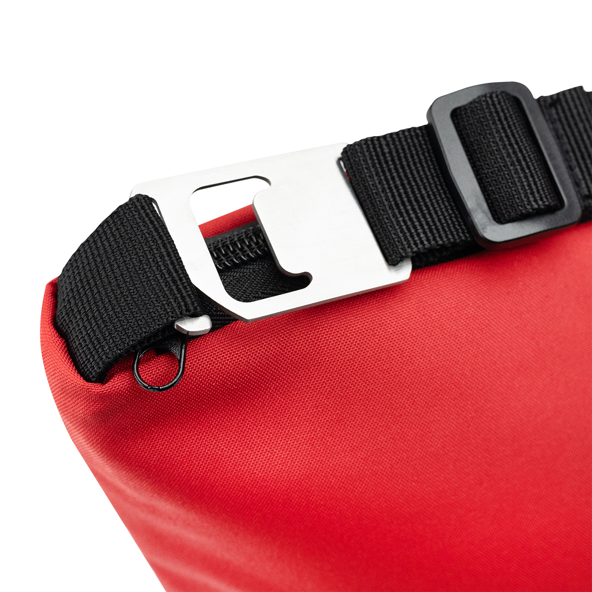 Adjustable strap provides comfortable carrying and includes a built-in bottle opener for convenience