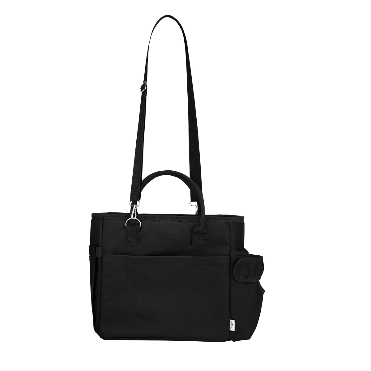 Features both adjustable, removable shoulder strap and sturdy carrying handles with snap closure for versatile transport