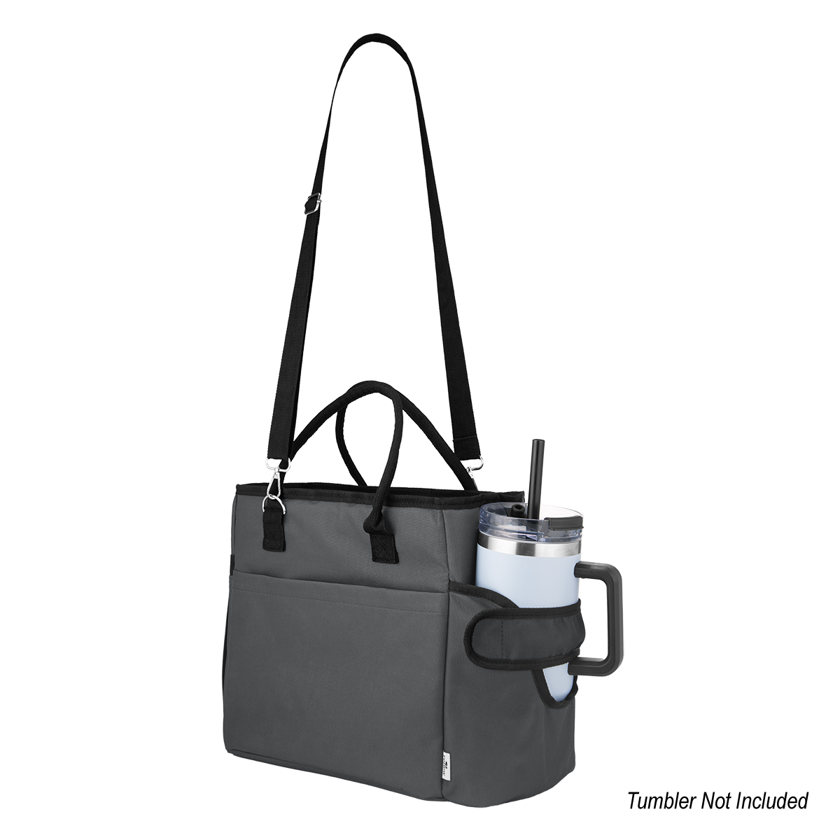 Front slip pocket and elastic side pocket fit utensils and most 40 oz tumblers with or without handles
