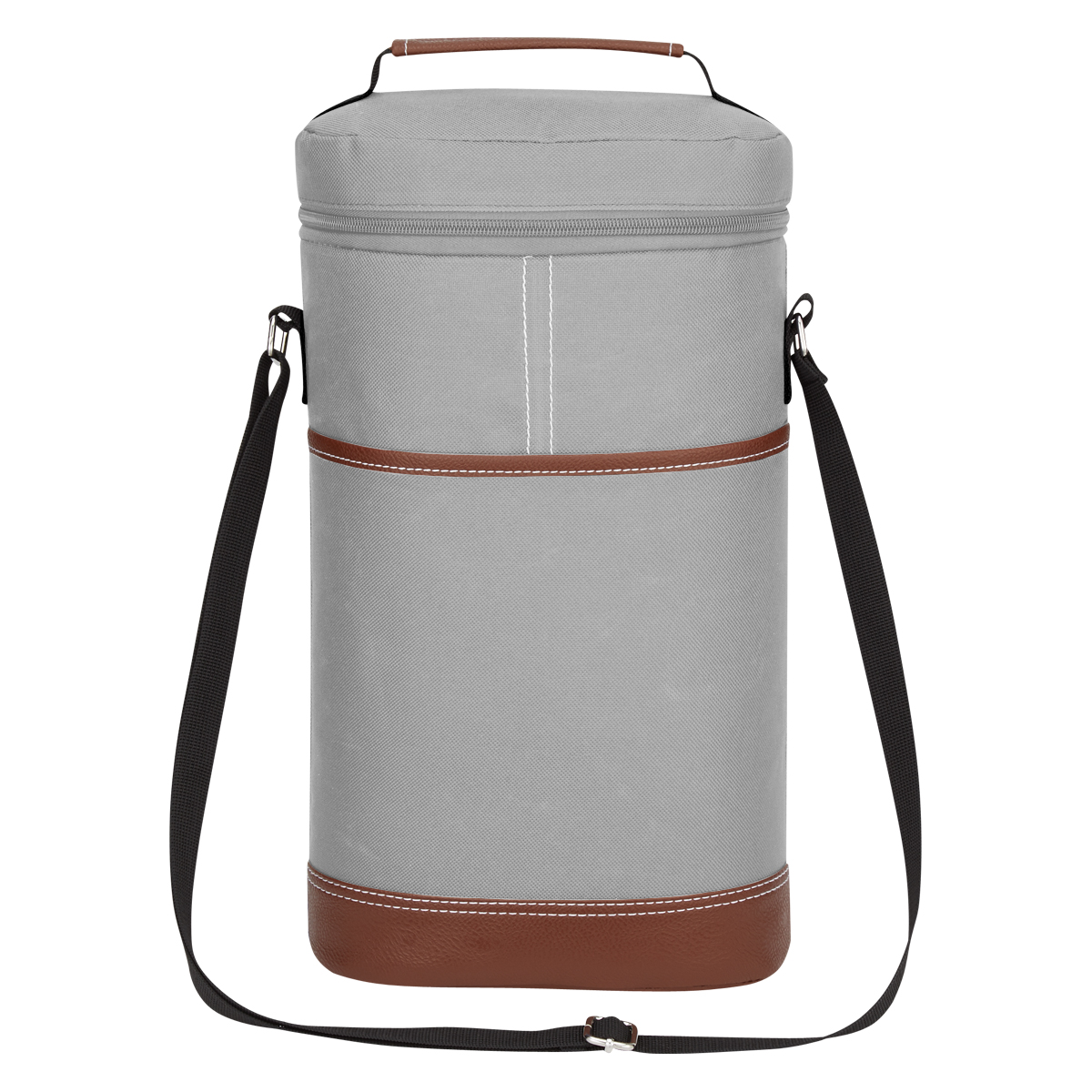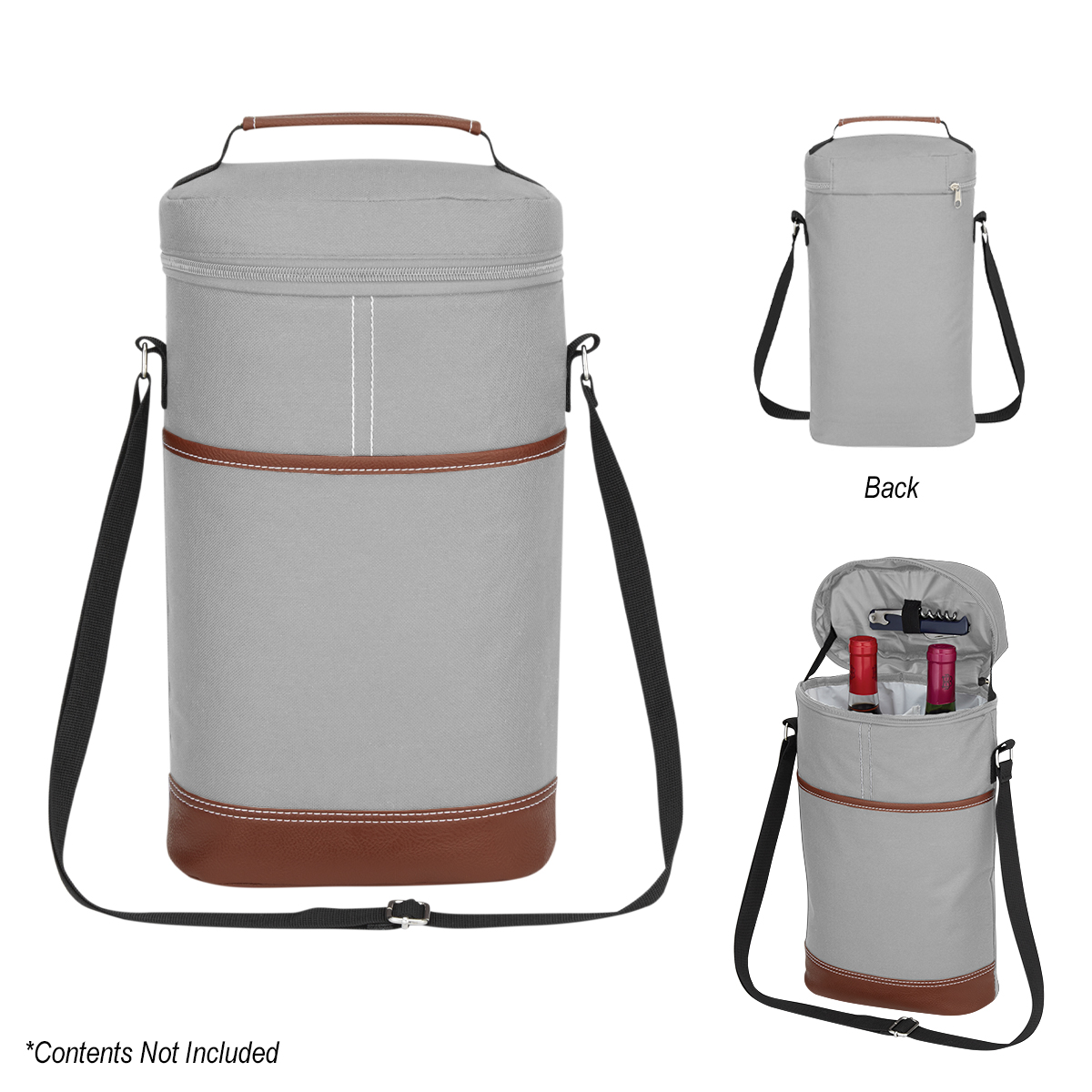 Holds up to two bottles in a zippered main compartment with a collapsible divider to keep beverages secure and separated