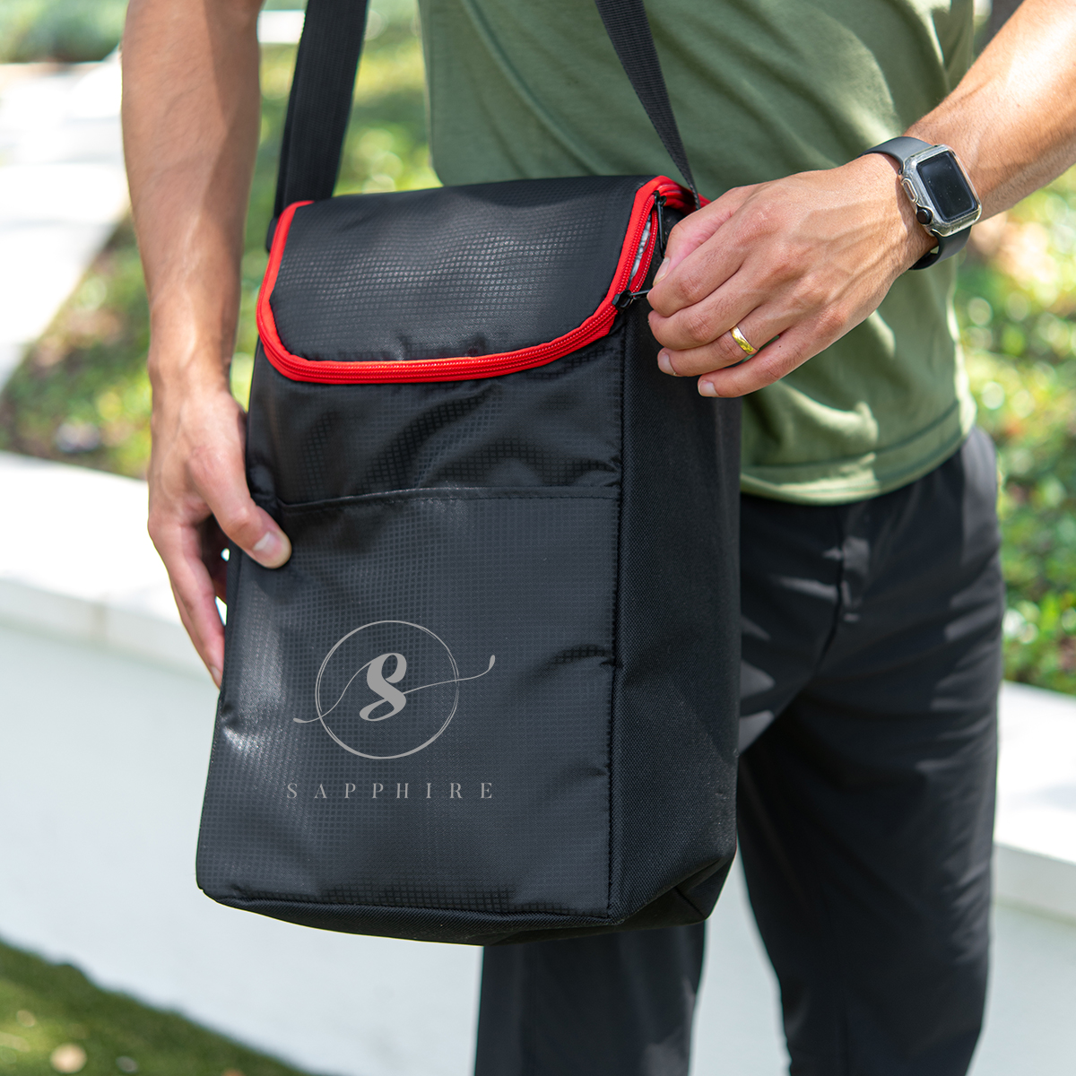 Adjustable shoulder strap makes carrying comfortable for picnics, tailgates, or company outings