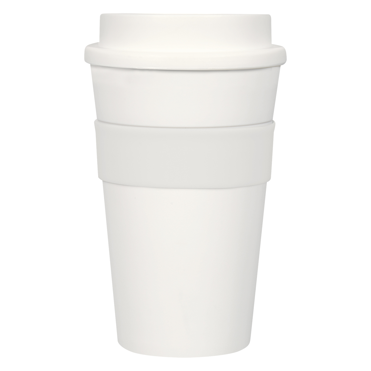 A silicone band provides a comfortable, secure grip even when the tumbler is full