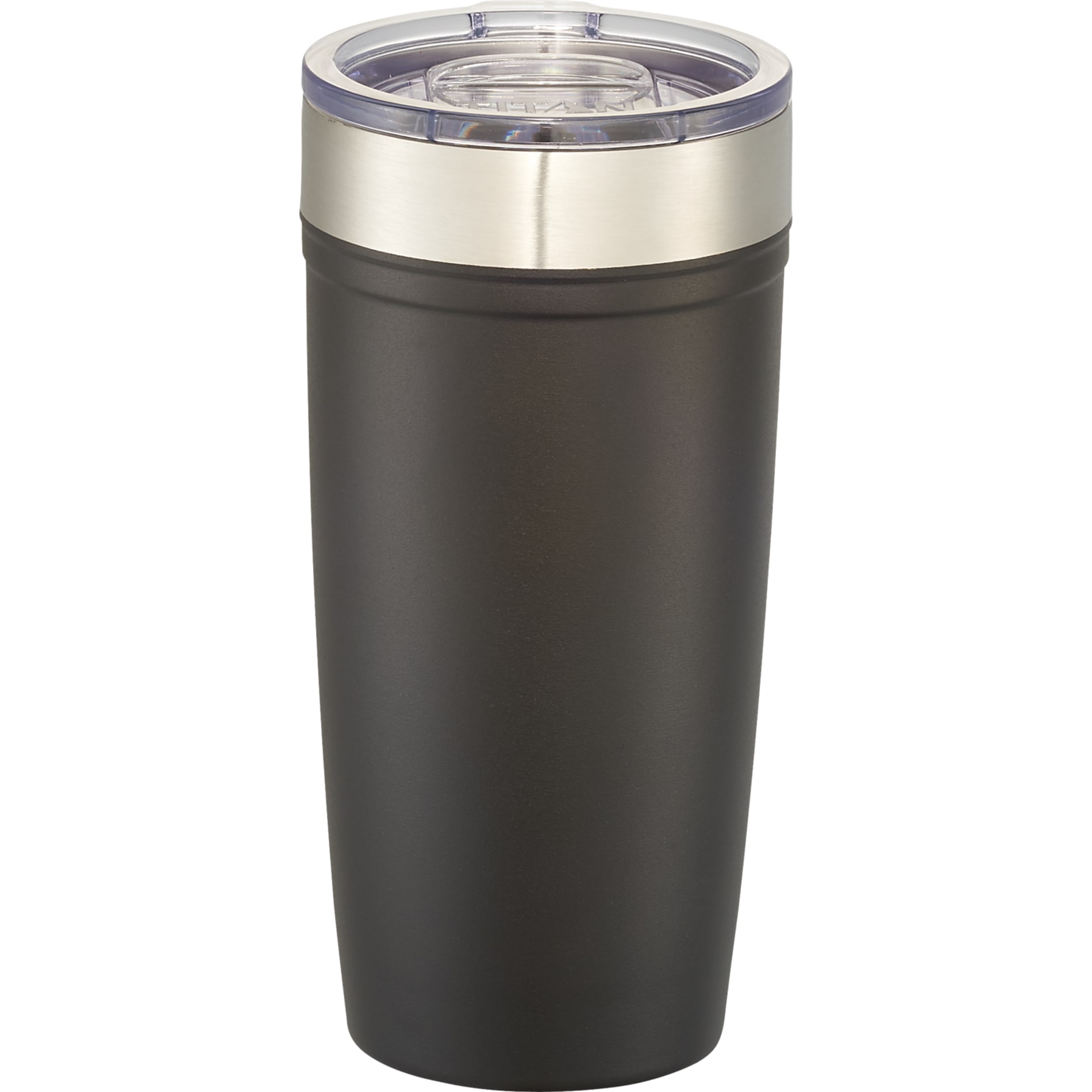 Push-on lid with slide closure offers secure transport and convenient sipping