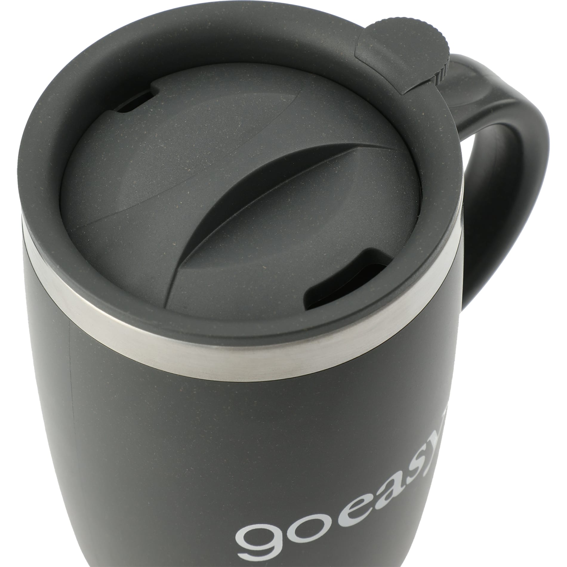 Push-on lid with twist secure closure helps prevent spills while on the go