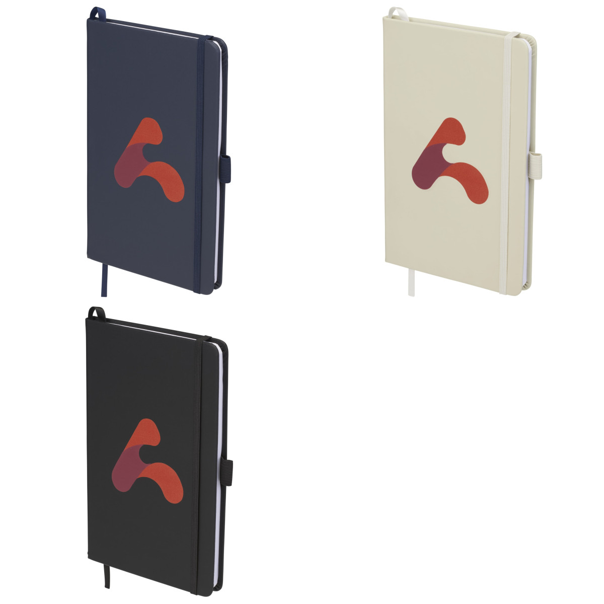 Practical design with color-coordinated elastic closure, pen loop, and ribbon page marker