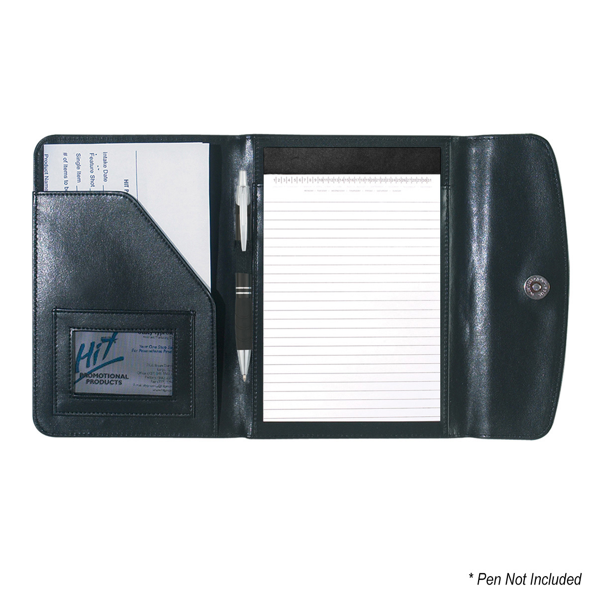 Secure snap closure keeps notes and documents safely inside