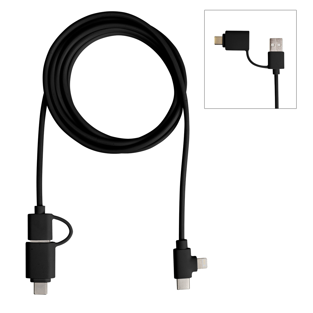 Compatible with Apple® 8-Pin, Micro USB, and Type-C devices for versatile charging options