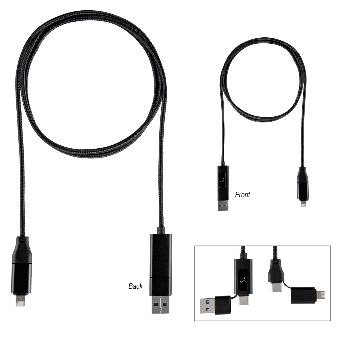 Compatible with Apple® 8-Pin, Micro USB, and Type-C devices, allowing you to charge multiple devices with one cable