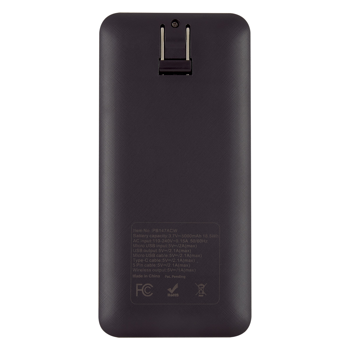 5,000 mAh lithium ion battery provides reliable backup power for phones and small electronics