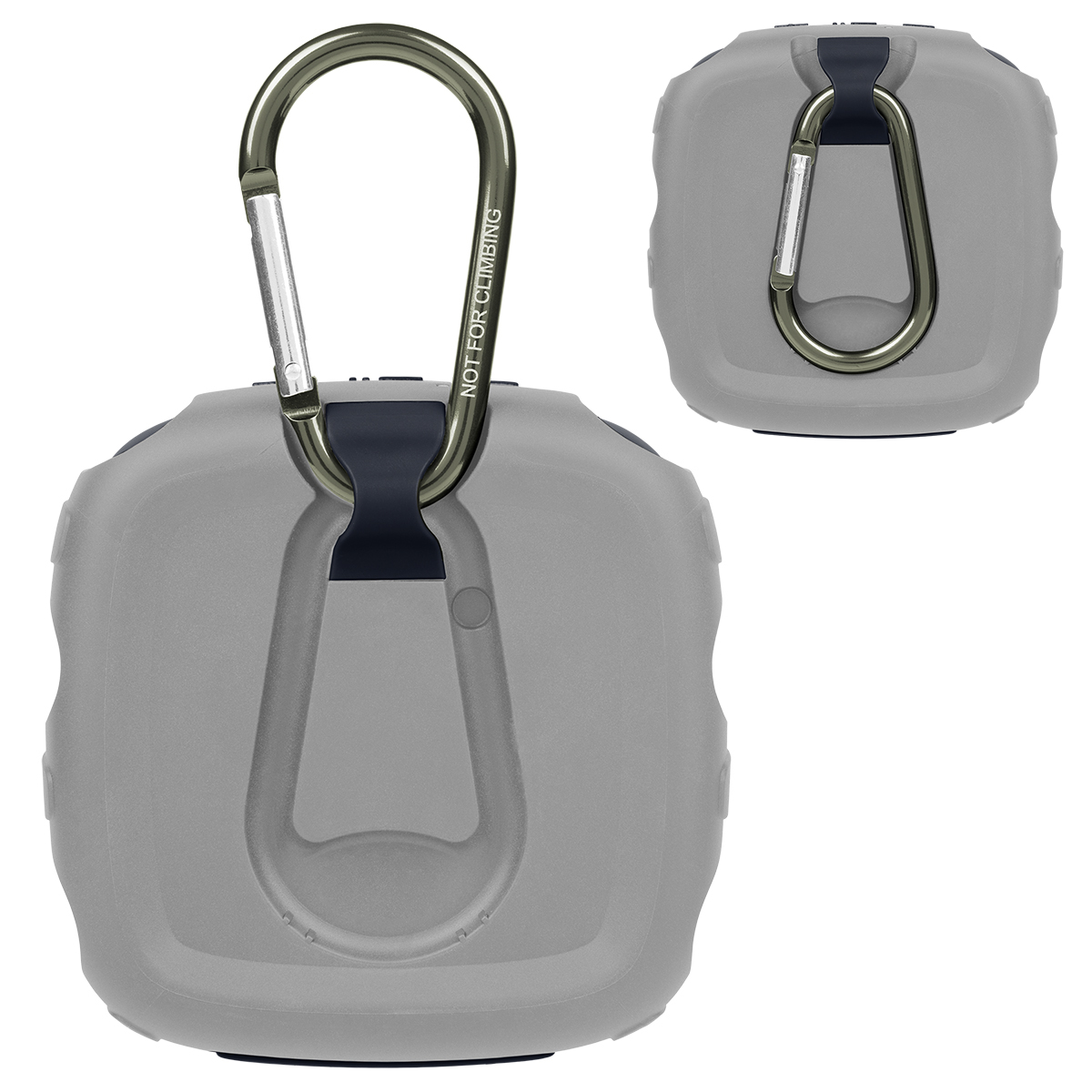 Integrated carabiner clip easily attaches to bags or gear for portable listening; not intended for climbing
